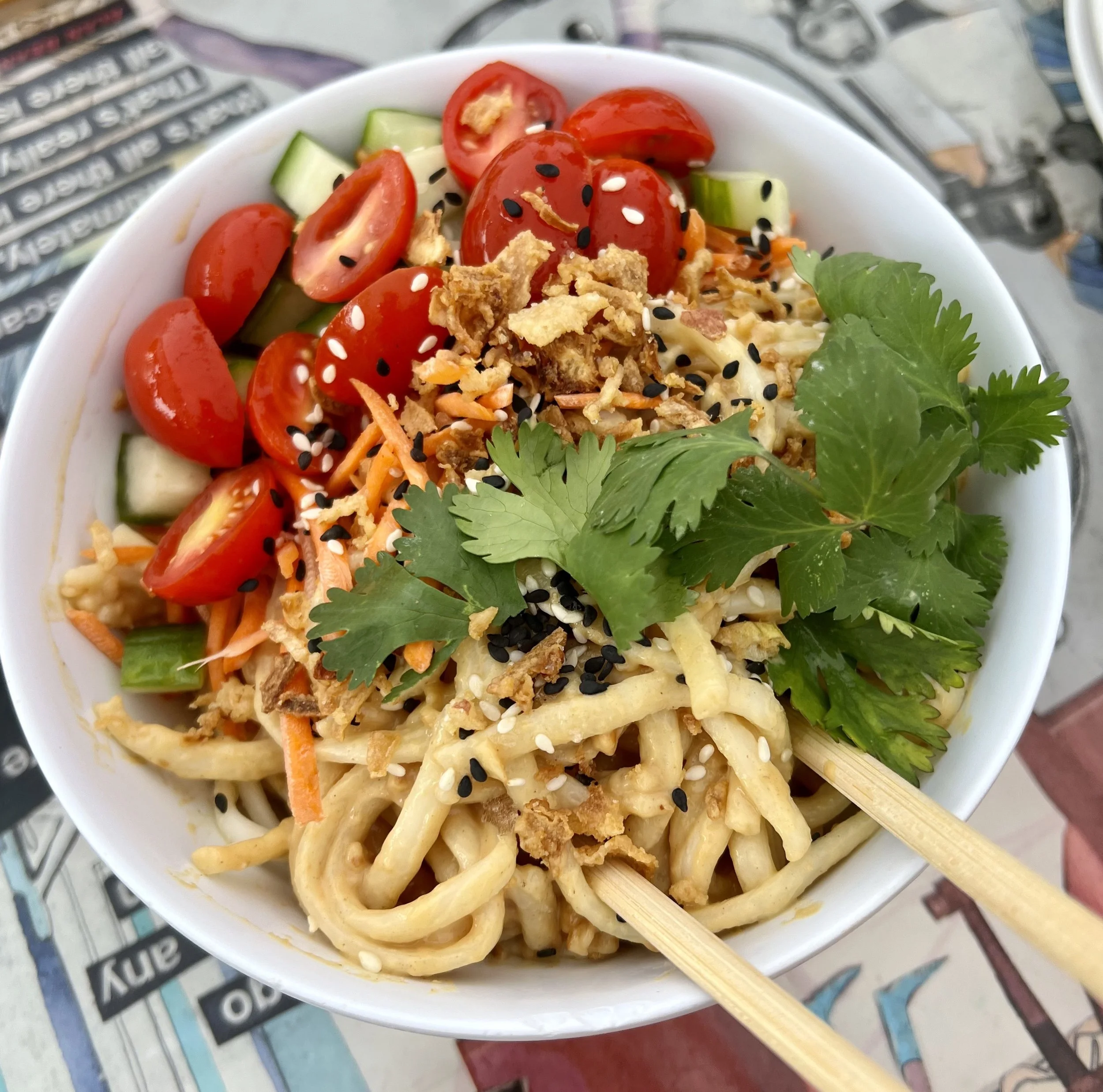 Next we enjoyed the peanut-topped Pad Thai Burger and Indian-spiced Keema Lettuce Wraps, as well as two very different noodle dishes: the Cold Noodle Bowl packed with Southeast Asian flavors, and Fancy Bucatini served in a savory espresso cream sauce, citrus ricotta and biscotti crumble.