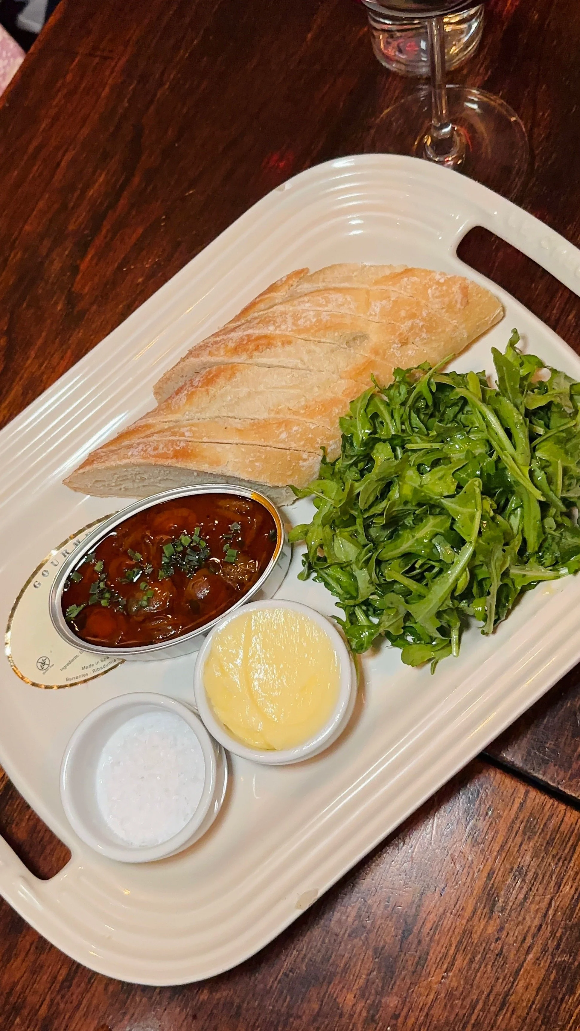 While Stems & Skins may be best known for its natural wine program, the food also held its own. We kicked things off with the Whipped Ricotta, topped with garlic-fermented honey and lemon zest and served with warm crostini. The Mushroom Toast with king trumpets, shiitakes, crème fraîche and tarragon was rich and earthy, while the Grilled Cheese, with melty provolone and gruyere, was pure comfort alongside cornichons and a bright arugula salad. Other highlights included the Classic Caesar, Trout Roe with crème fraîche and kettle chips, Marinated Olives and Tinned Scallops with baguette and butter. Each dish was thoughtful, shareable, and full of flavor.