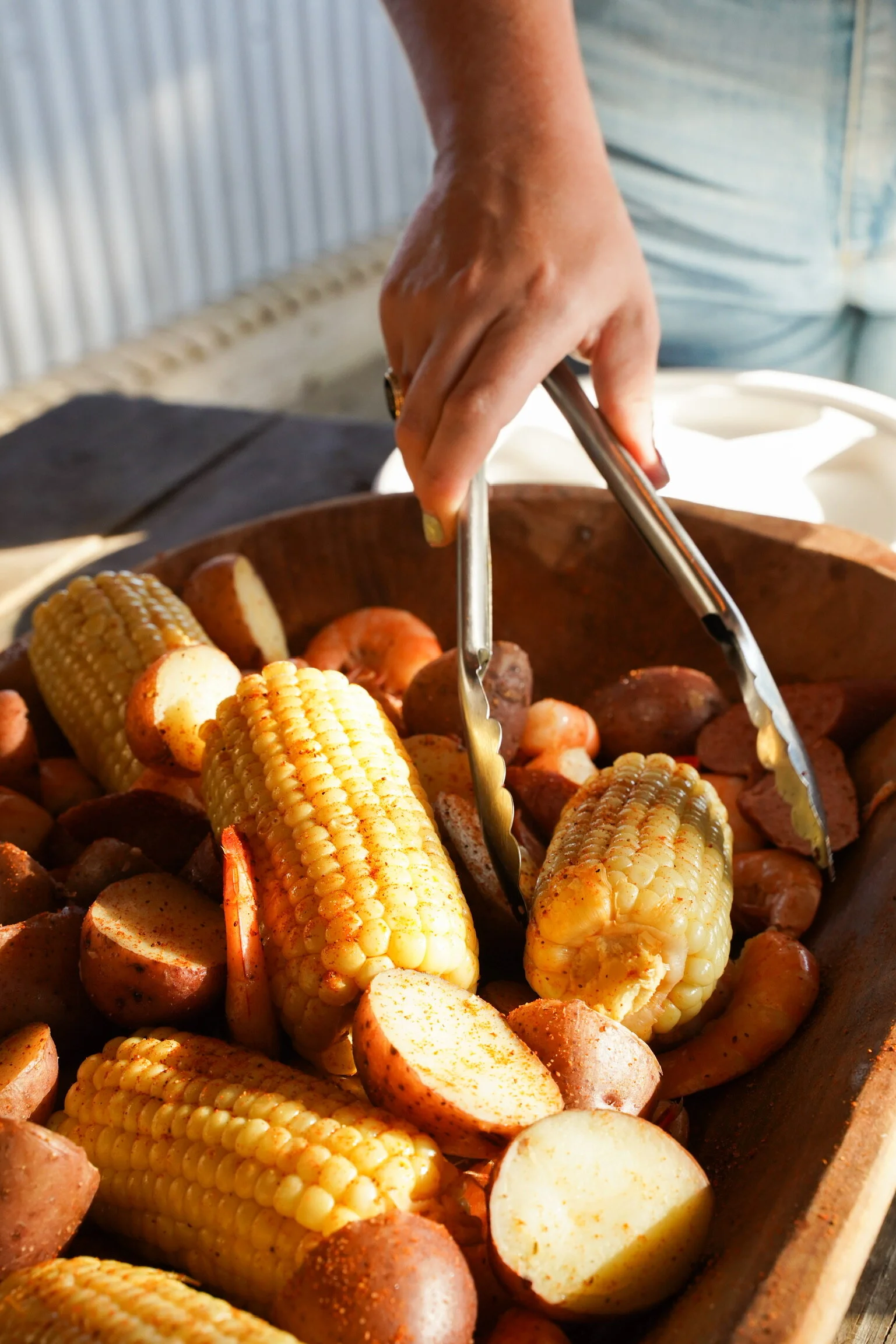 We gathered around first to shuck some local oysters and munch on hush puppies as we gazed out at the sun beginning to set over the Folly River. Charlotte, over joyously, dug right in and shucked and slurped down about 15 oysters in under four minutes. (I'm not kidding) Next, we filled our plates (and our stomachs) with the tastiest Shrimp & Grits and a perfectly seasoned Lowcountry boil comprised of potatoes, sausage, corn on the cob and fresh shrimp.
